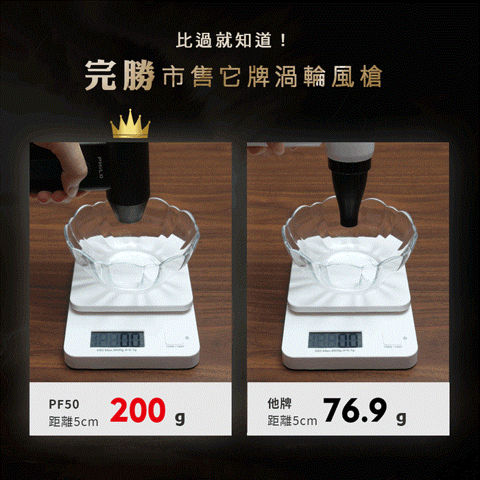 實測風壓最高可來到205g,是市場同等規格渦輪風槍中的強者