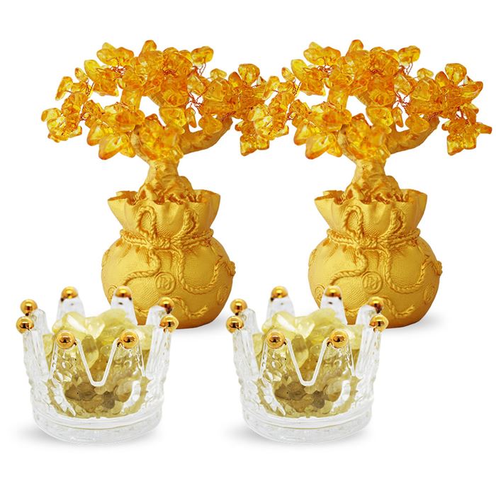 招財開運黃水晶發財樹聚寶盆x2