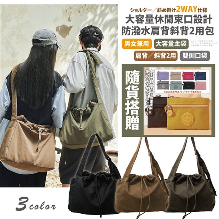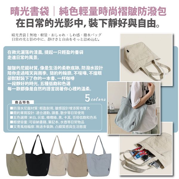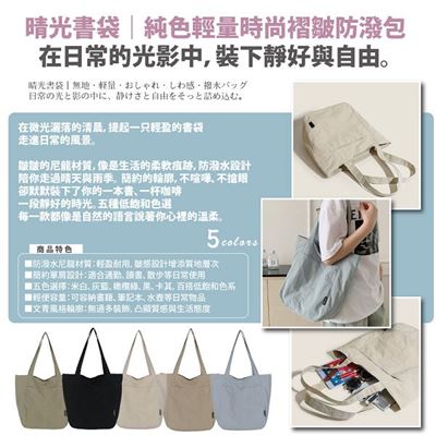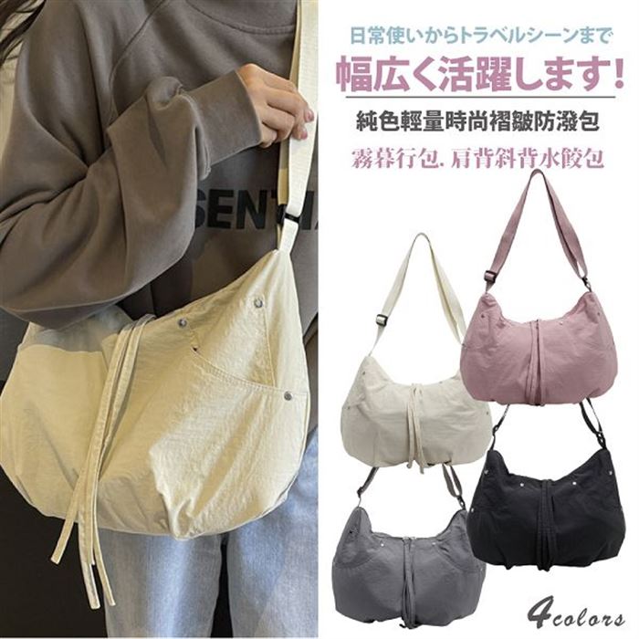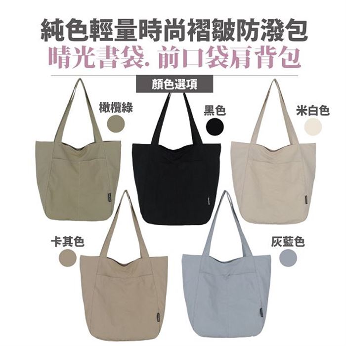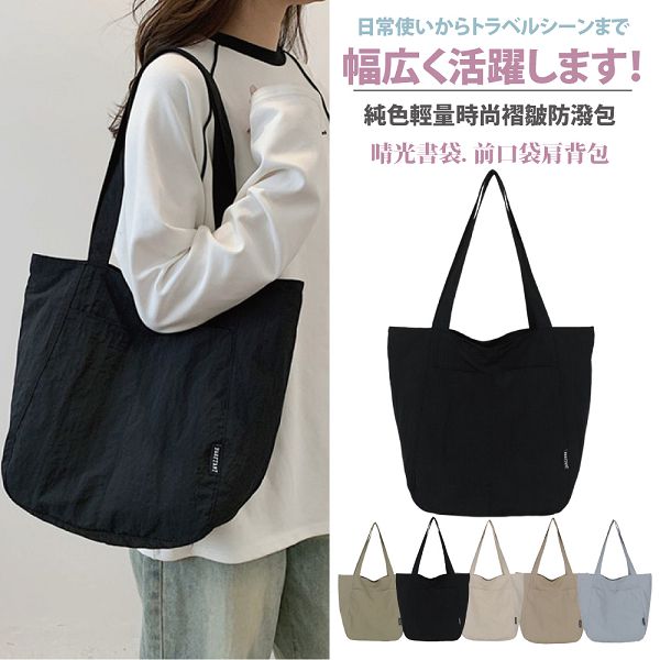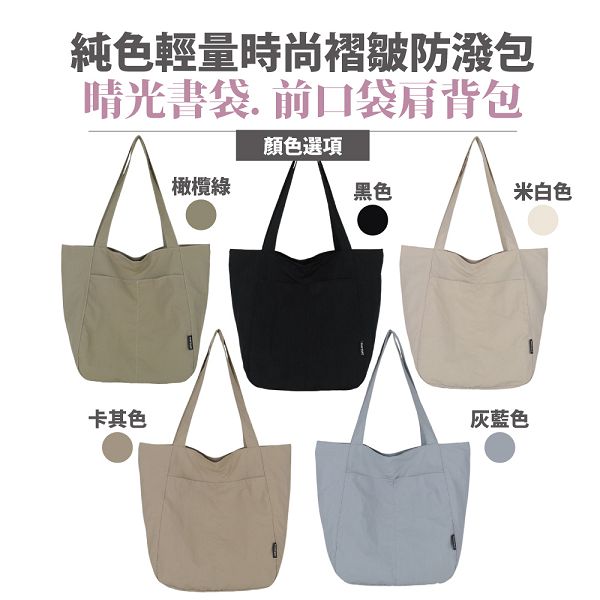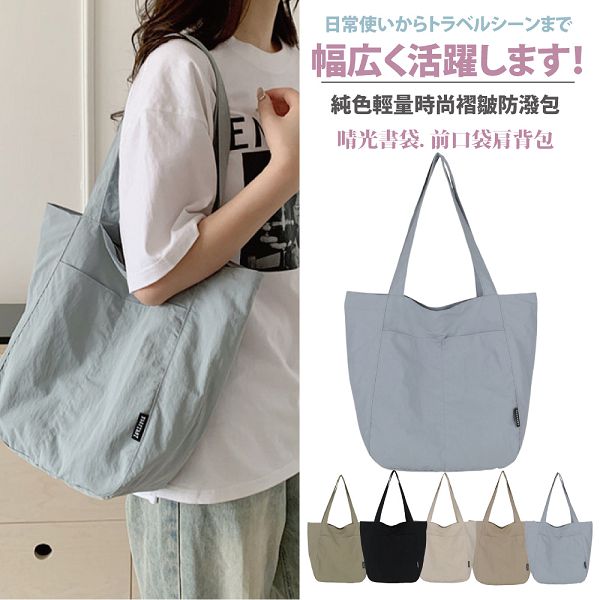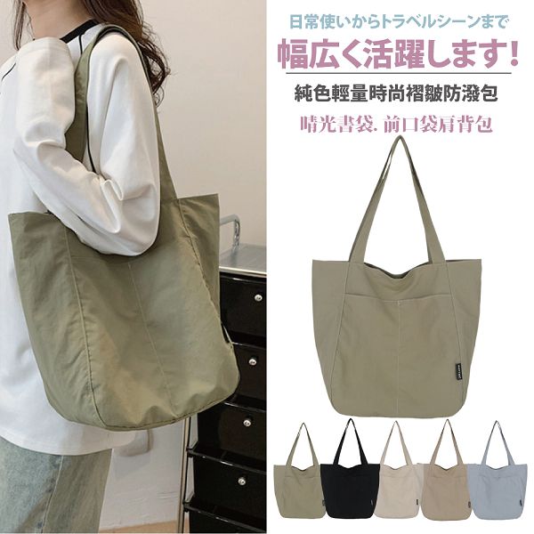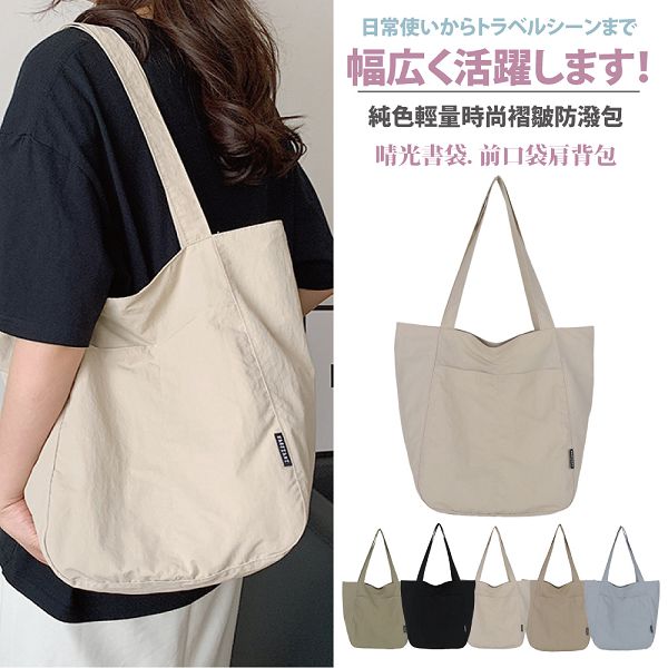 | 【商品名稱】 | 【Sayaka】晴光書袋純色輕量時尚褶皺防潑單肩包 - 5色可選 |