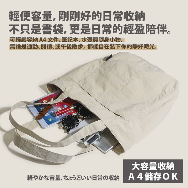 輕便容量:可容納書籍、筆記本、水壺等日常物品