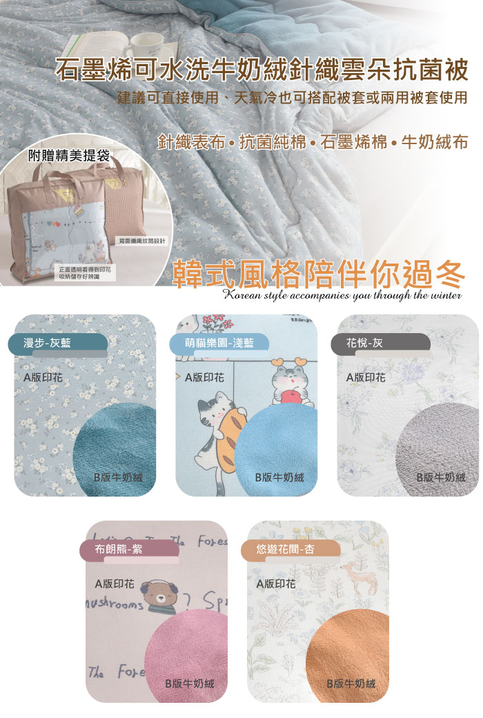 | 商品名稱 | 【買1送1】Annabelle石墨烯可水洗牛奶絨針織雲朵抗菌被 |