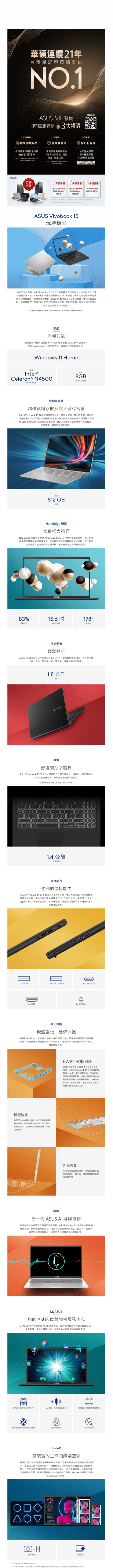 【ASUS】X1500KA N4500 8G 512G 15.6吋 FHD 輕薄筆電 黑 |