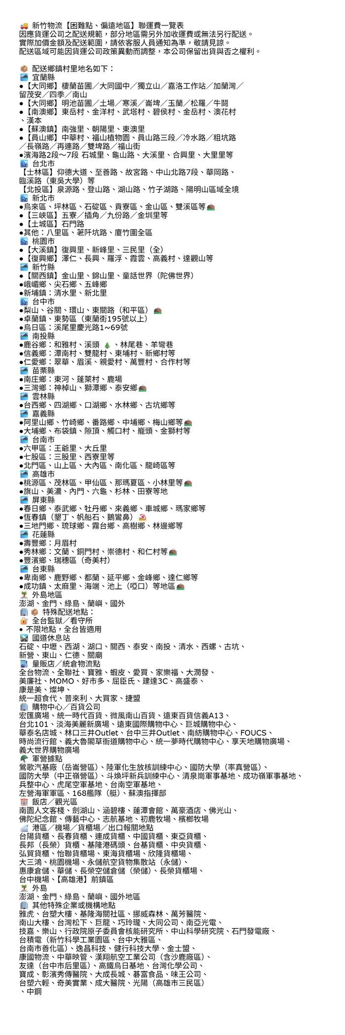 實際加價金額及配送範圍,請依照客服人員通知為準,敬請見諒。