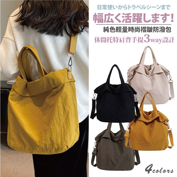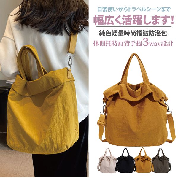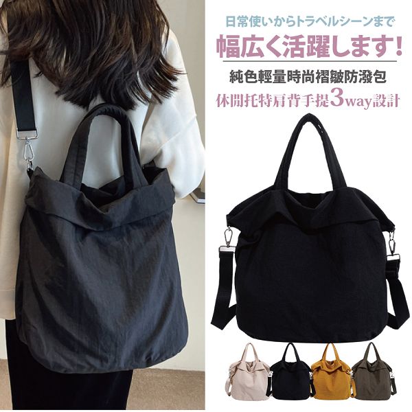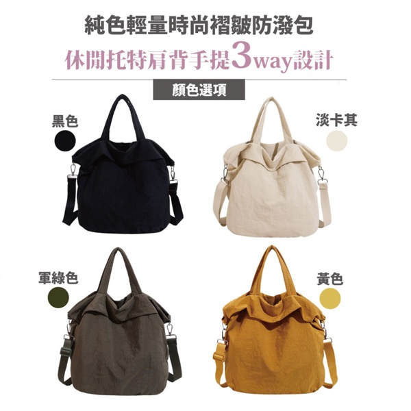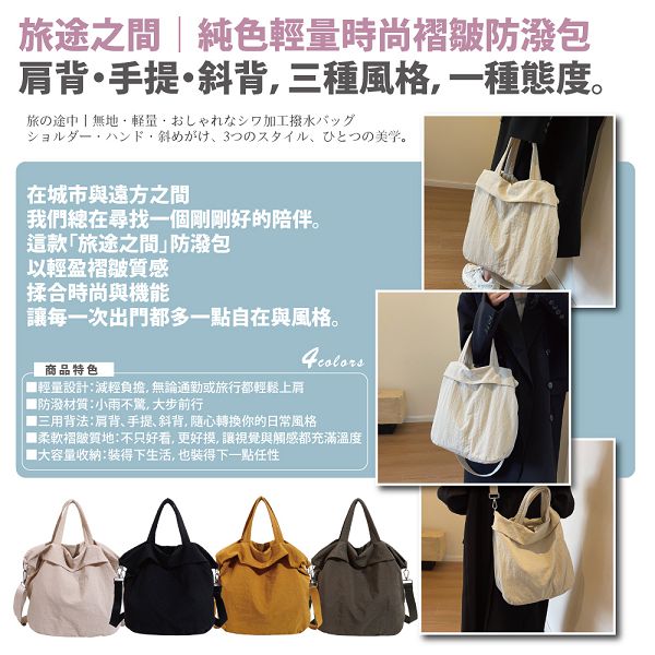 | 【商品名稱】 | 【Sayaka】旅途之間.輕量時尚褶皺防潑3用包 (肩背/手提/斜背) - 4色可選 |