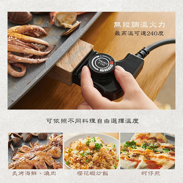 .無段調溫火力,最高240度,依照不同料理自由選擇。