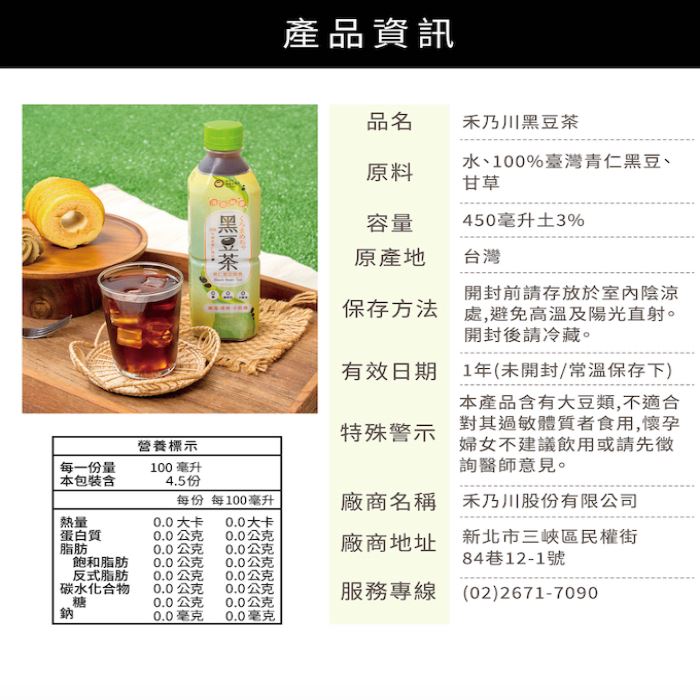 | 商品名稱 | 禾乃川黑豆茶450ml/瓶-12入組(宅配 離島不配送) | |