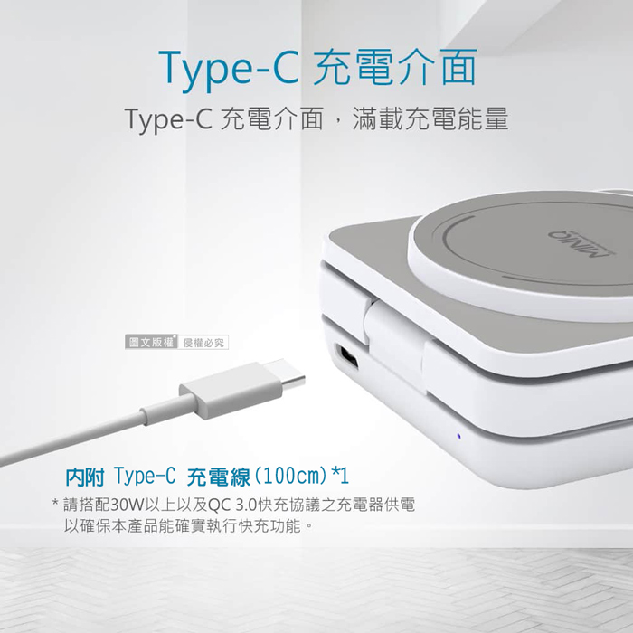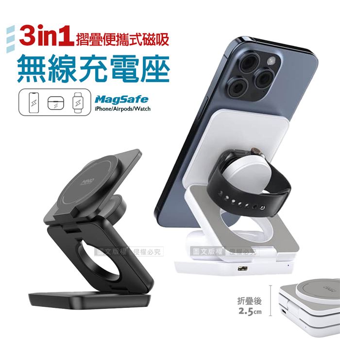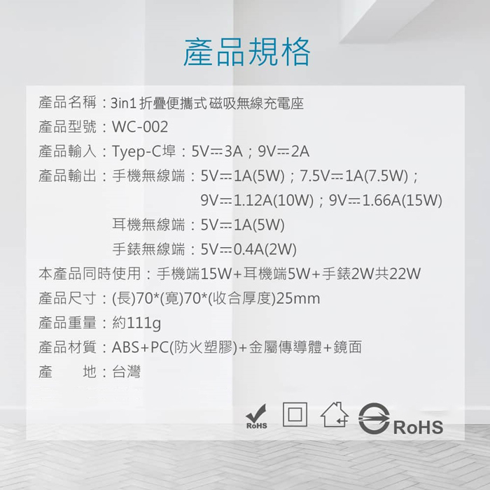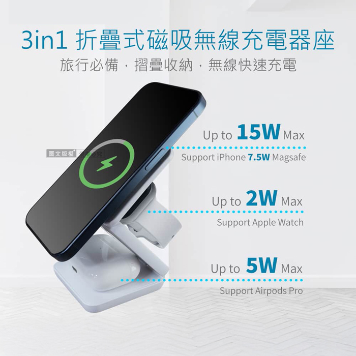 | 內容物 | 3合1摺疊無線充電座x1、TYPE-C充電線x1 |