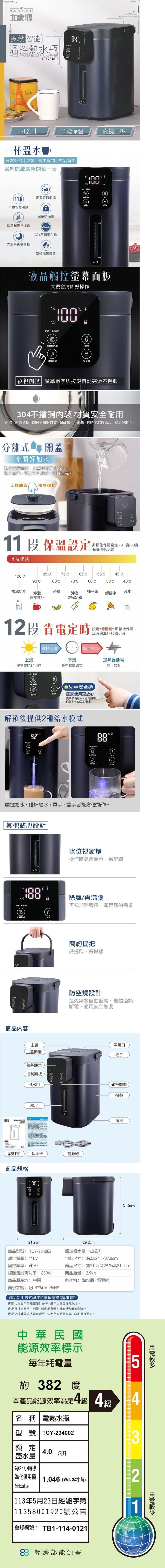 | 商品名稱 | 大家源 4L多段智能溫控熱水瓶 TCY-234002 |