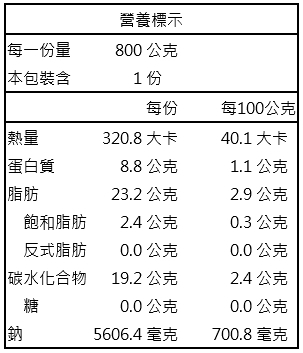 | 營養標示 | 如附件 |