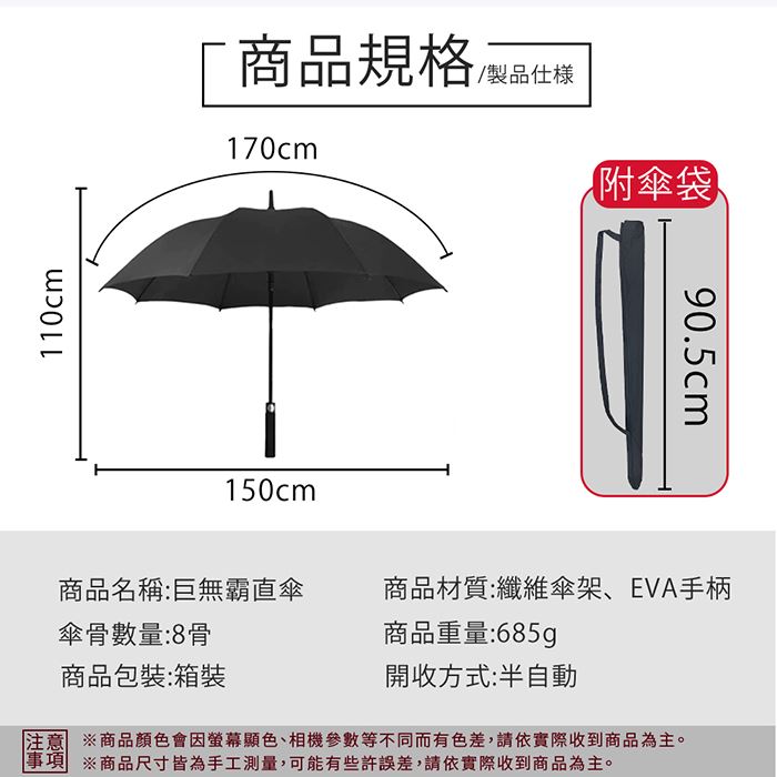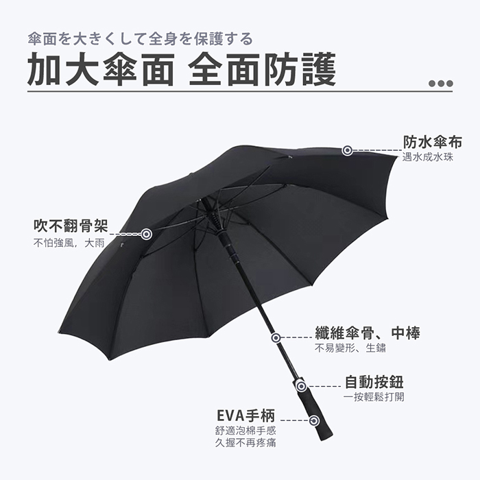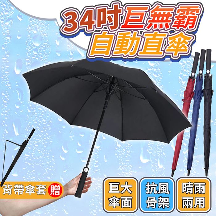 | 【商品名稱或型號】 | (團)【棠品居】34吋巨無霸自動直傘(附傘套) - 3色可選 [3入組] |
