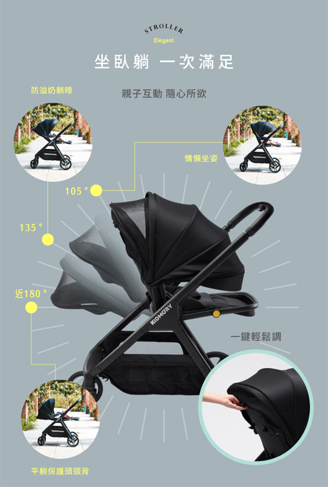 | 商品名稱 | 【KIDMORY】雷萌車_自動秒收雙向嬰兒推車-尊爵黑(KM-622-BK) |