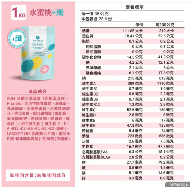| 商品名稱 | 【樂維根】植物性分離大豆蛋白-1kg裝 (高纖水蜜桃)+加贈:葉黃素發泡錠10錠 |