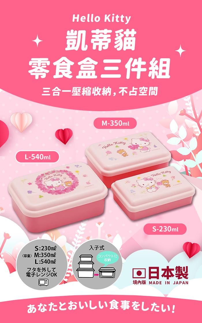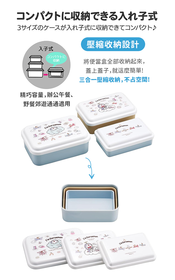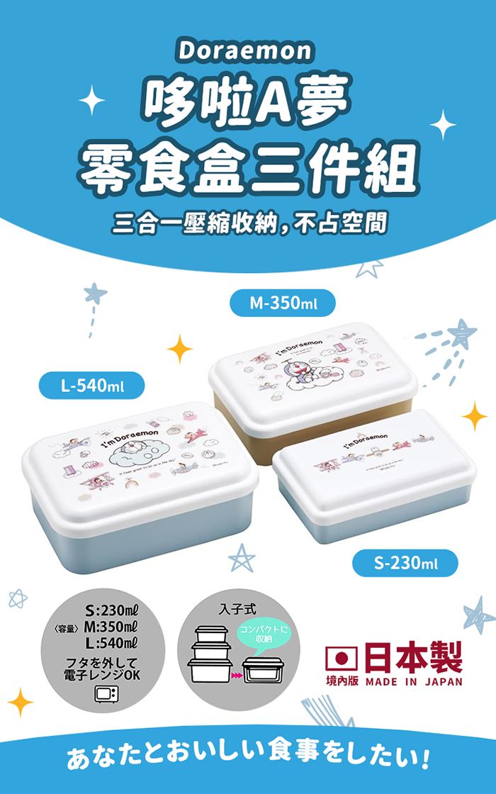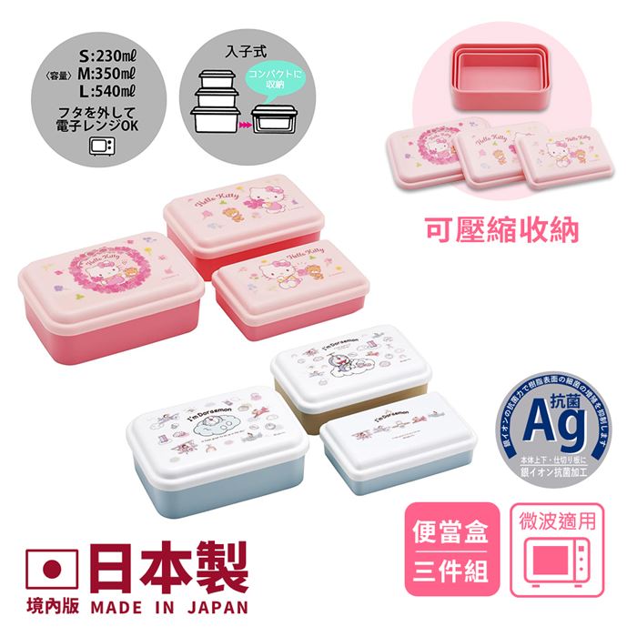 | 商品名稱 | 【百科良品】日本製 凱蒂貓 哆啦A夢 便當零食盒 保鮮餐盒 三件組 |