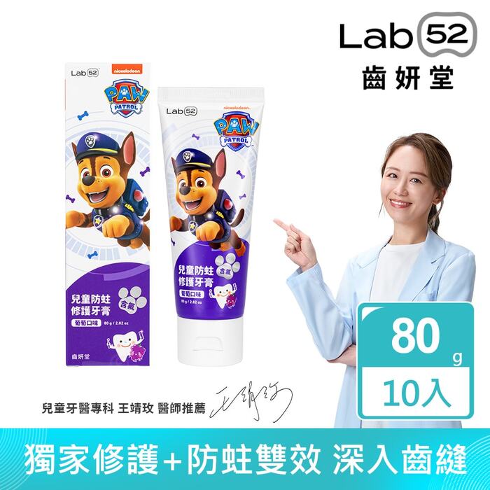 | 商品名稱 | 【Lab52齒妍堂】兒童含氟防蛀修護牙膏80g(葡萄)10入組 |