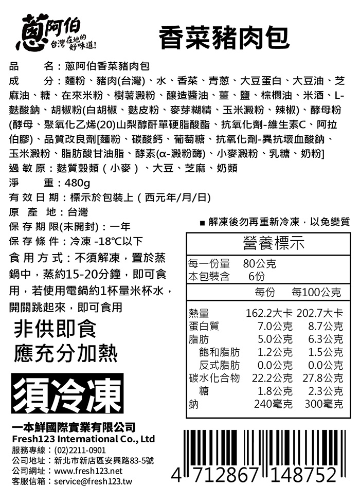 | 商品名稱 | 蔥阿伯香菜豬肉包 |