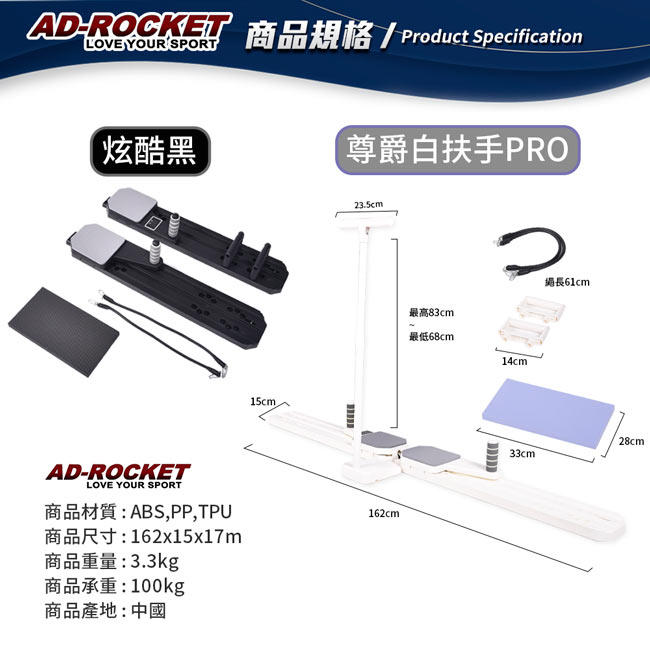 | 【商品名稱或型號】 | 【AD-ROCKET】美腿滑雪機/多功能健腹滑行板 (8合一扶手PRO款) |