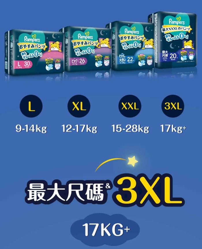全方位防漏。大寶寶專用。最高可達130%吸收力。 |