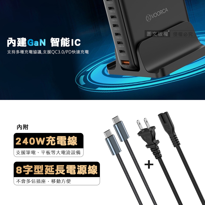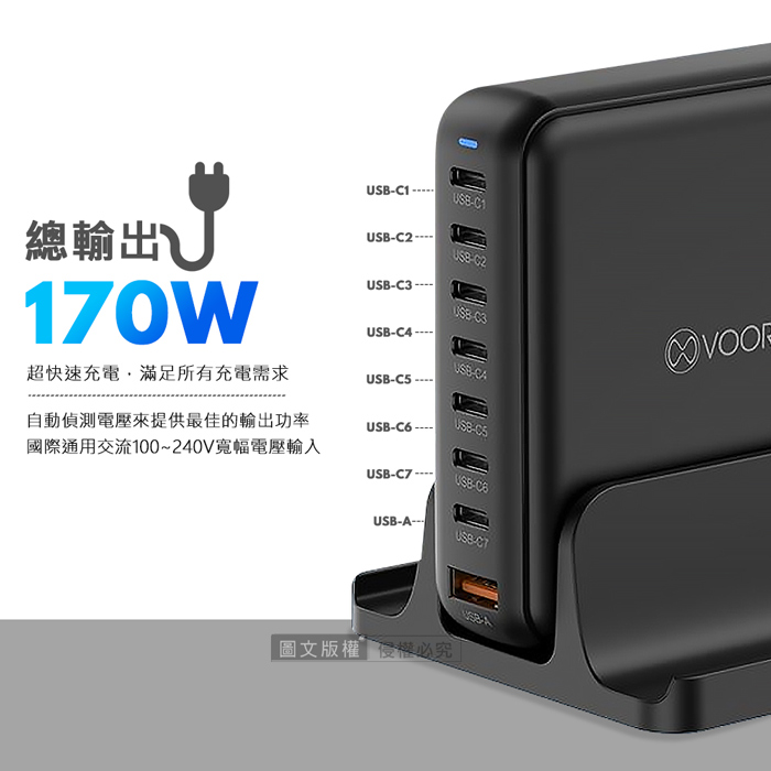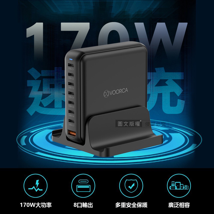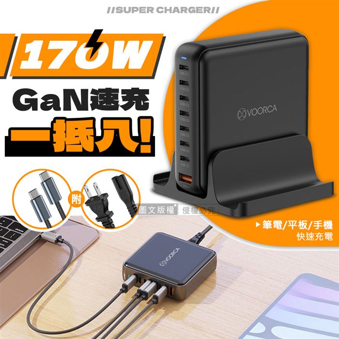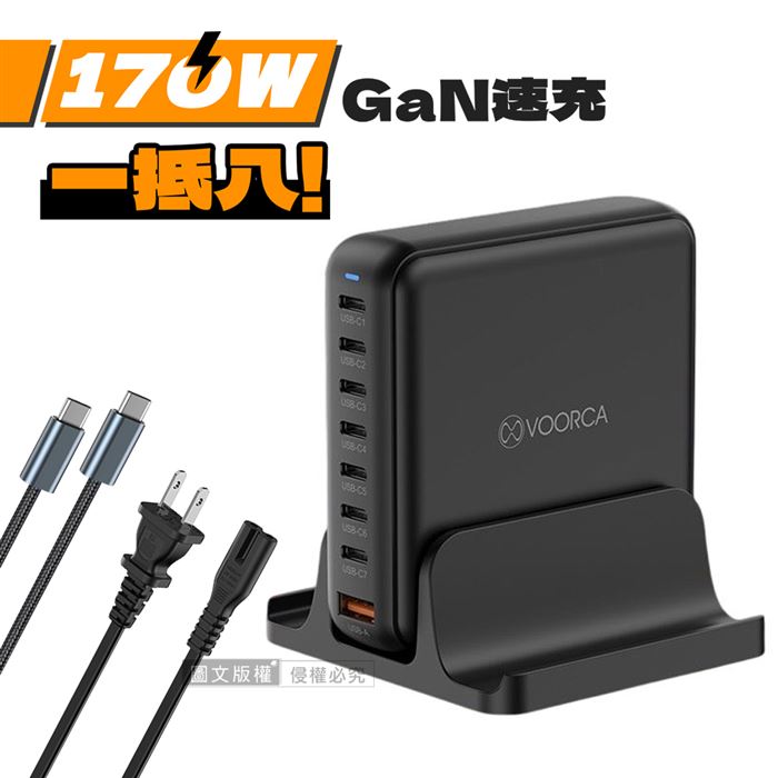 | 【商品名稱或型號】 | 【VOORCA】全方位8in1 170W氮化鎵GaN 八孔快充延長線充電器 |
