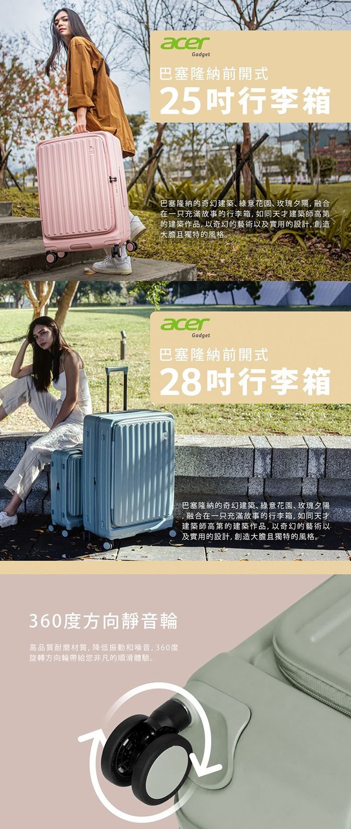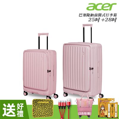 | 【商品名稱】 | 【Acer Fashion】巴塞隆納前開式行李箱2件組(25+28吋)-夢幻粉 [加贈4好禮] |