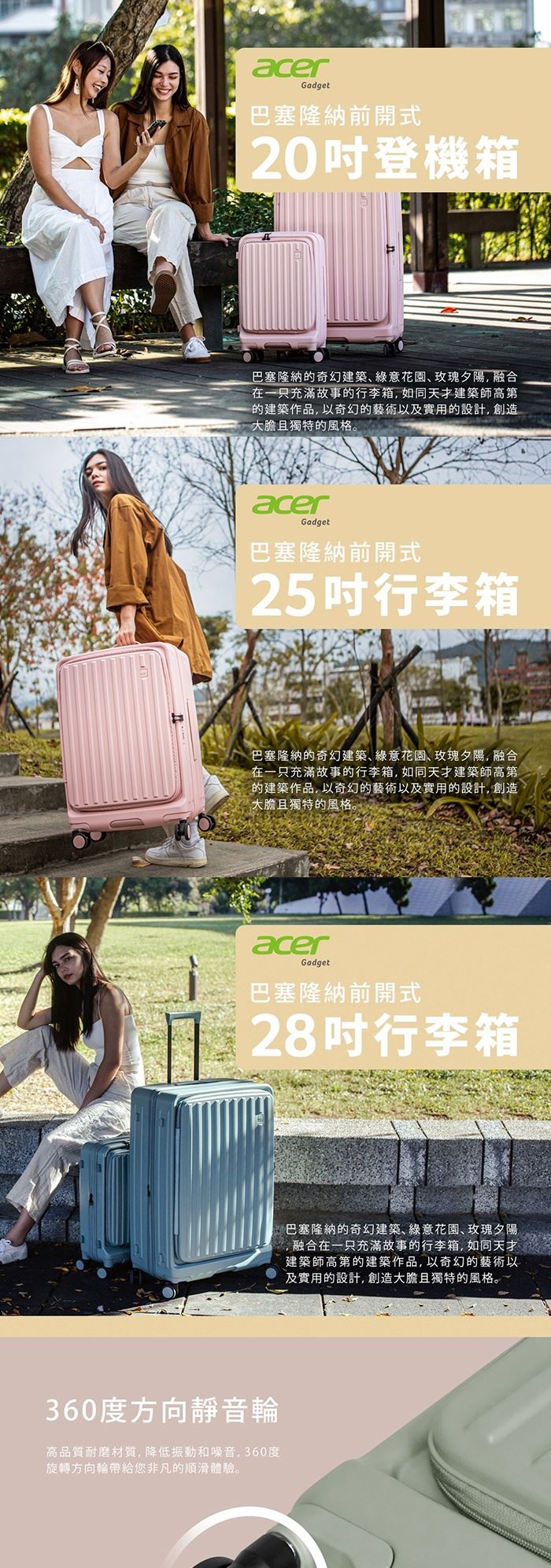 | 【商品名稱】 | 【Acer Fashion】巴塞隆納前開式行李箱3件組(20+25+28吋)-夢幻粉 [加贈4好禮] |