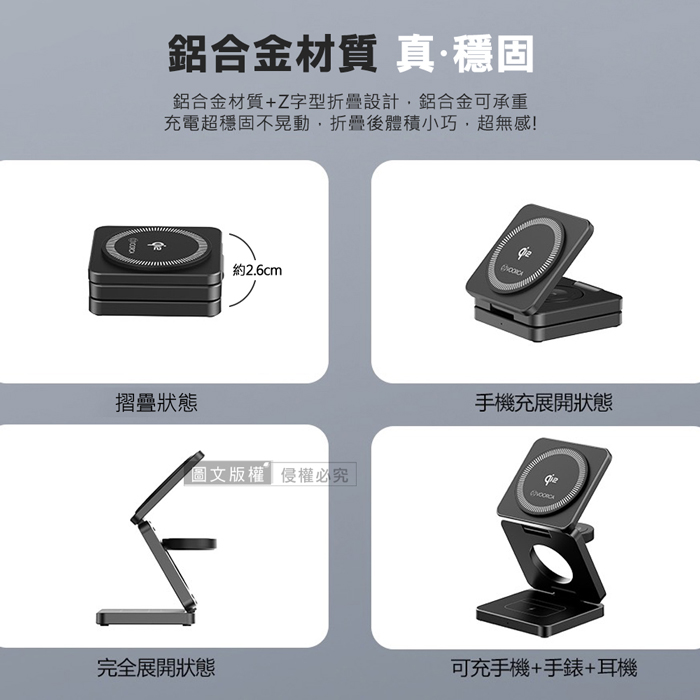 | 【商品名稱或型號】 | 【VOORCA】Qi2認證 極磁Z充 三合一折疊式磁吸無線充電座 |