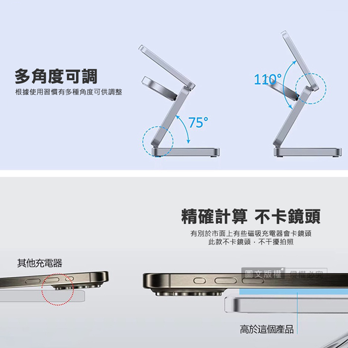 注意事項: 警告:請勿將金屬物件或磁卡放在充電板上,否則可能會導致充電器無法正確使用。 注意事項:因拍攝略有色差,圖片僅供參考,顏色請以實際收到商品為準。 本產品不提供試用,7天「鑑賞期」非「試用期」。除非是新品瑕疵問題,拆封後無法辦理退貨。欲辦理退貨之商品必須是全新完整、未拆封之包裝狀態(含商品本體、贈品、原包裝袋、盒、箱、隨貨文件)。 |