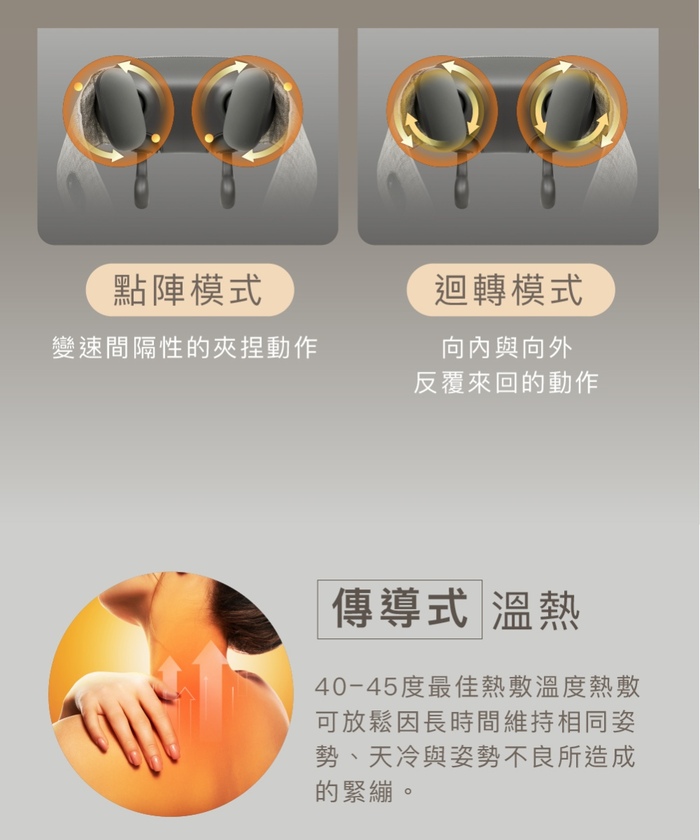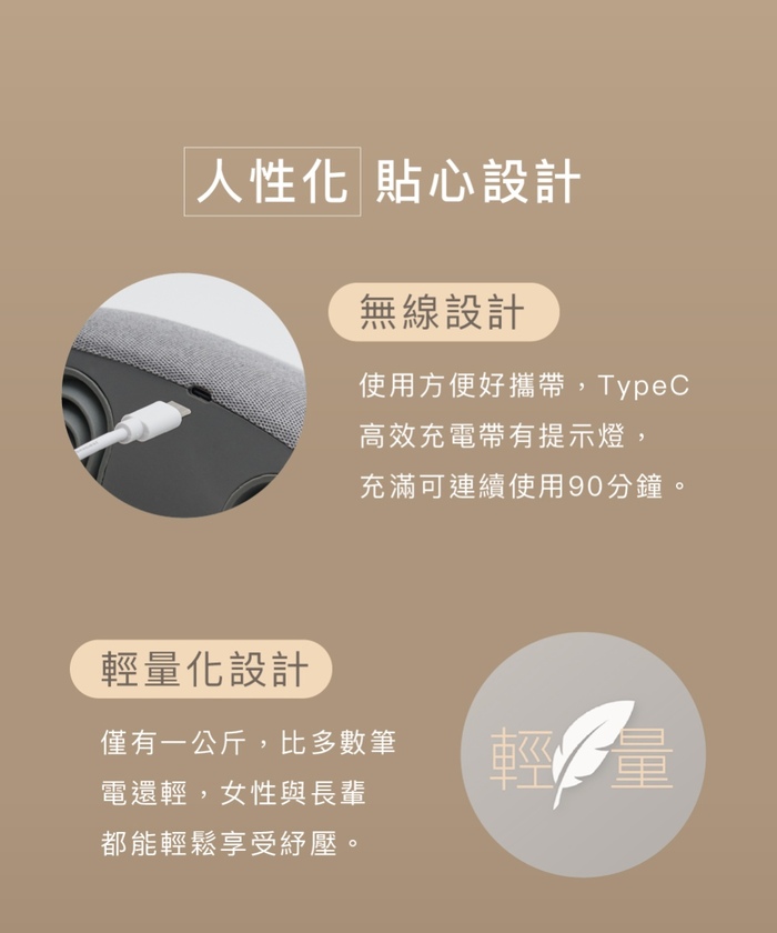 溫熱功能:暖暖包覆,讓身心徹底放鬆