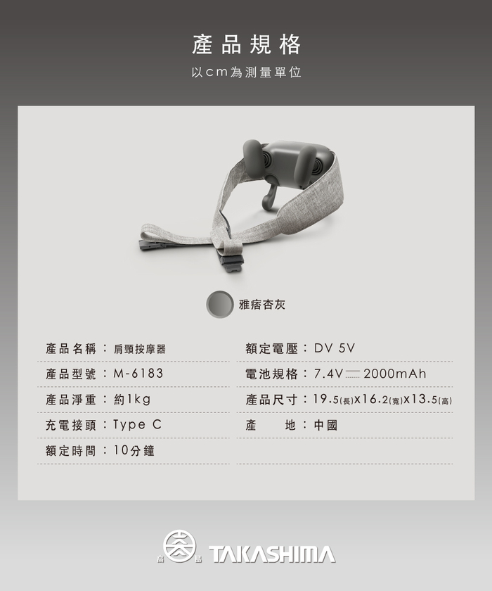 | 【商品名稱或型號】 | 【TAKASHIMA高島】頸舒系 頂級披肩 M-6183(肩頸按摩器) |