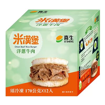 品名 : 喜生 冷凍洋蔥牛肉米漢堡 170公克 X 12入