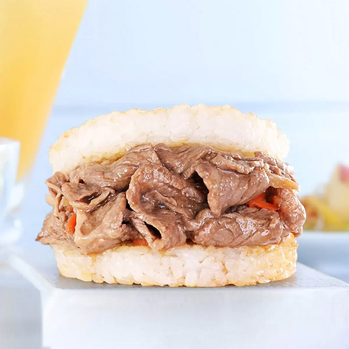 - 台式風味米漢堡,使用台灣在地米和獨門醬料拌炒