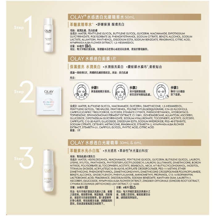 | 商品名稱/包裝內容規格 | OLAY 水光透亮精選組 |