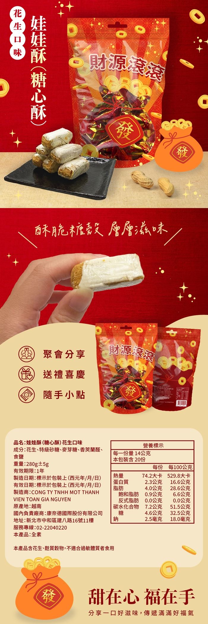 | 商品名稱 | 財源滾滾-娃娃酥(糖心酥)花生口味280g*10包 |