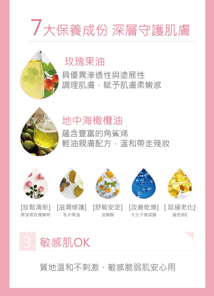 添加摩洛哥玫瑰精油,芬芳香氣卸淨同時保濕保養
