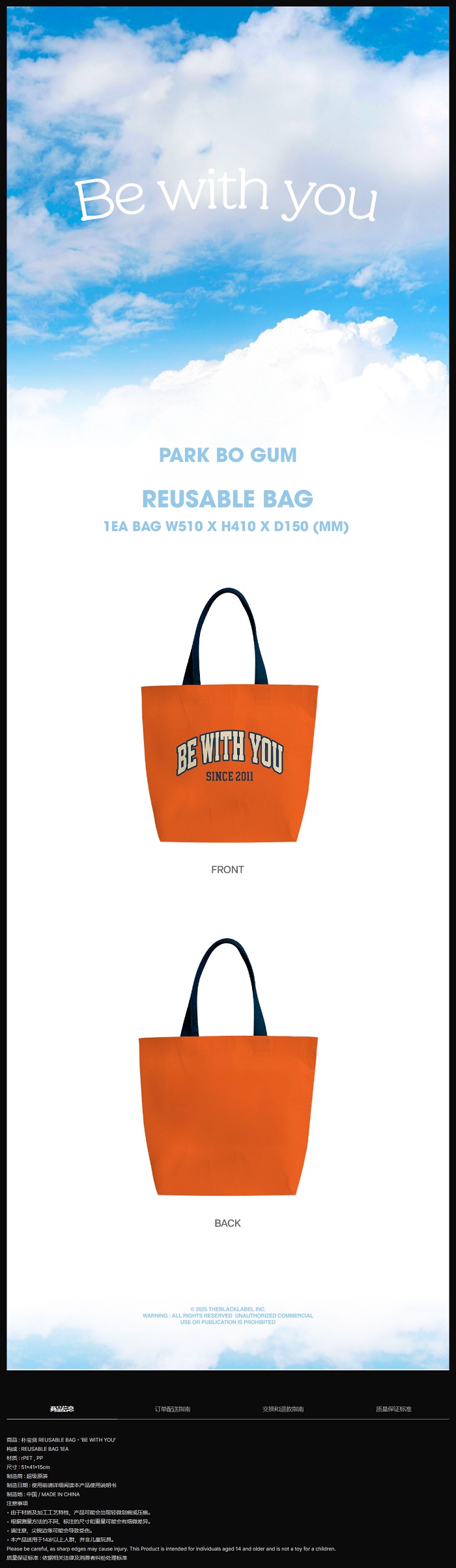 產品 :朴寶劍可重複使用購物袋 - "BE WITH YOU"
