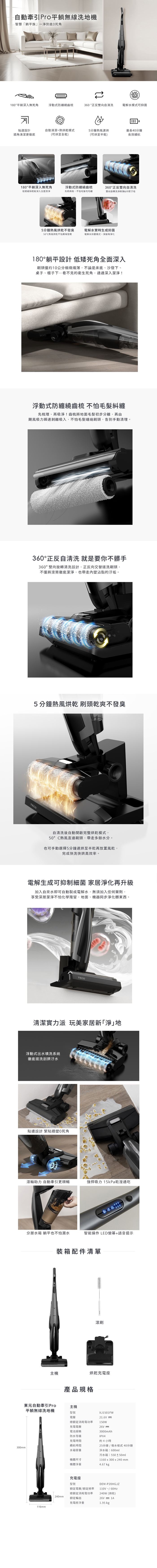 | 商品名稱 | 【TECO 東元】陳傑憲代言 自動牽引Pro平躺無線洗地機 XJ1501FW(15Kpa/180度平躺/5分鐘熱烘/電解水除菌) |