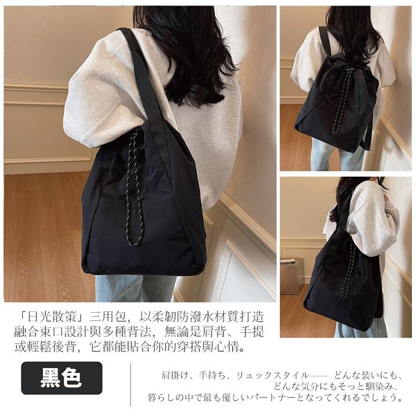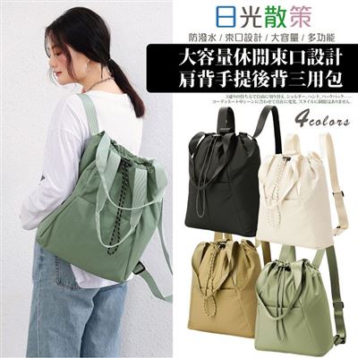 日光散策|大容量休閒束口設計 肩背手提後背三用包