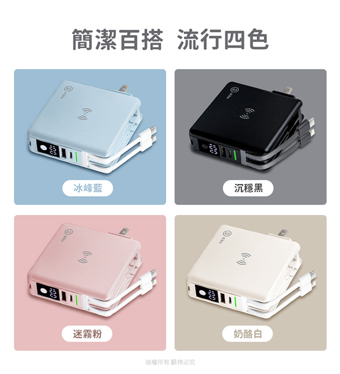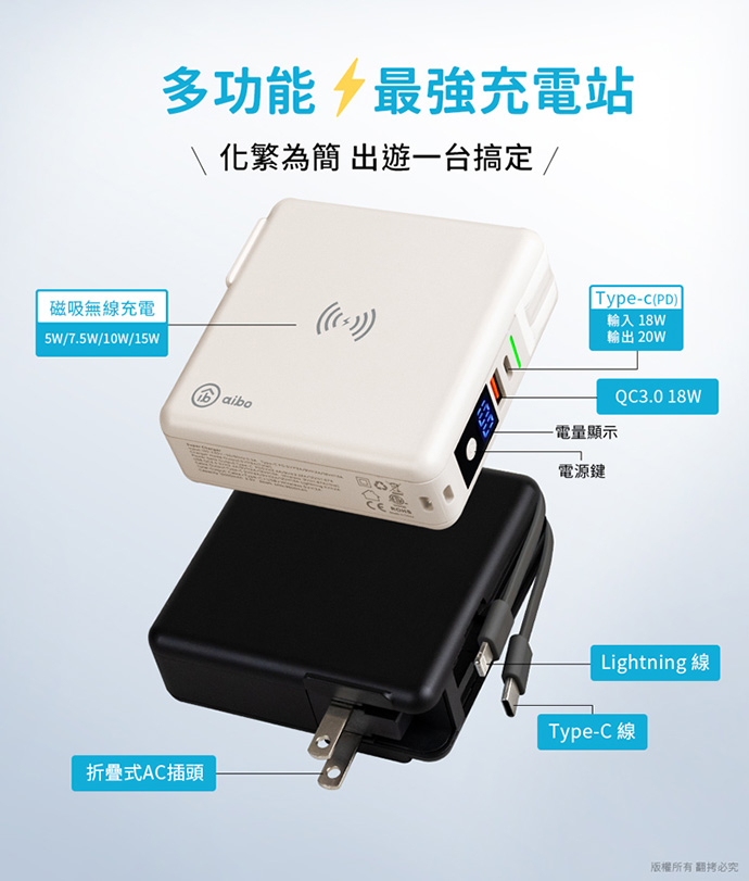 --磁吸無線充電,PD+QC3.0雙孔快充,AC折疊插頭 --