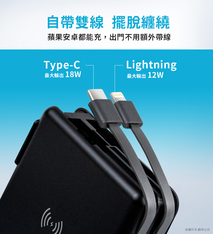蘋果/安卓都能充,出門不用額外帶線,真正擺脫纏繞線材!