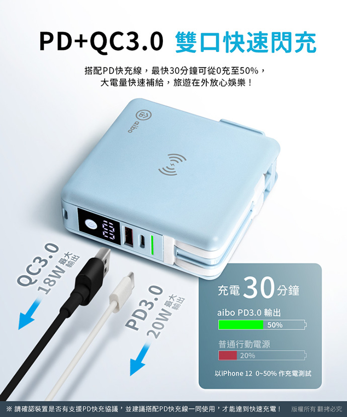 並建議搭配PD快充線一同使用,才能達到快速充電!