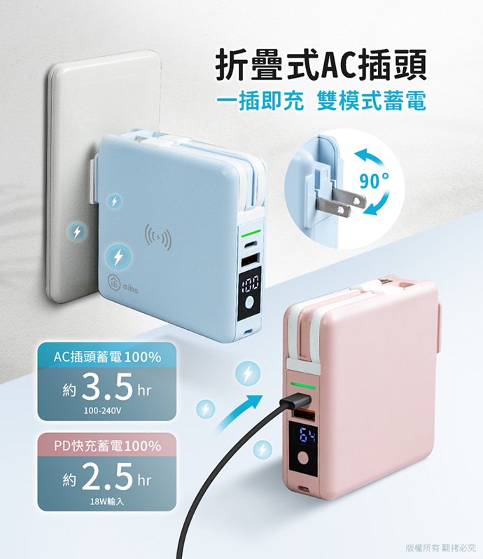 AC折疊插頭,一插即充,告別一堆充電器為包包省下空間;