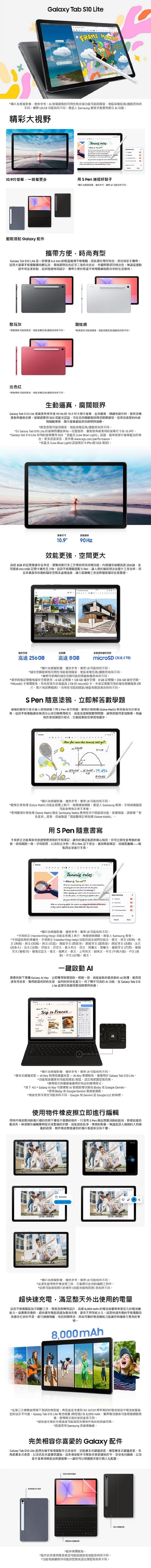 | 內容物 | Samsung Galaxy Tab S10 Lite 8G/256G WiFi X400 10.9吋平板電腦 |