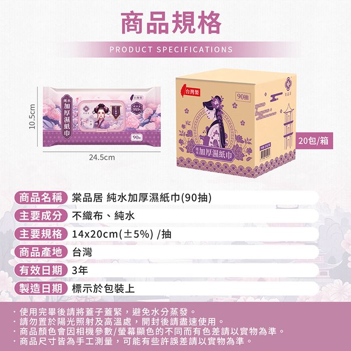 | 商品名稱 | 【箱購】《棠品居》純水加厚濕紙巾(90抽x20包) |