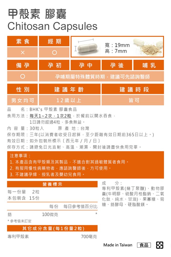 | 商品名稱 | BHK"s 甲殼素 膠囊 |