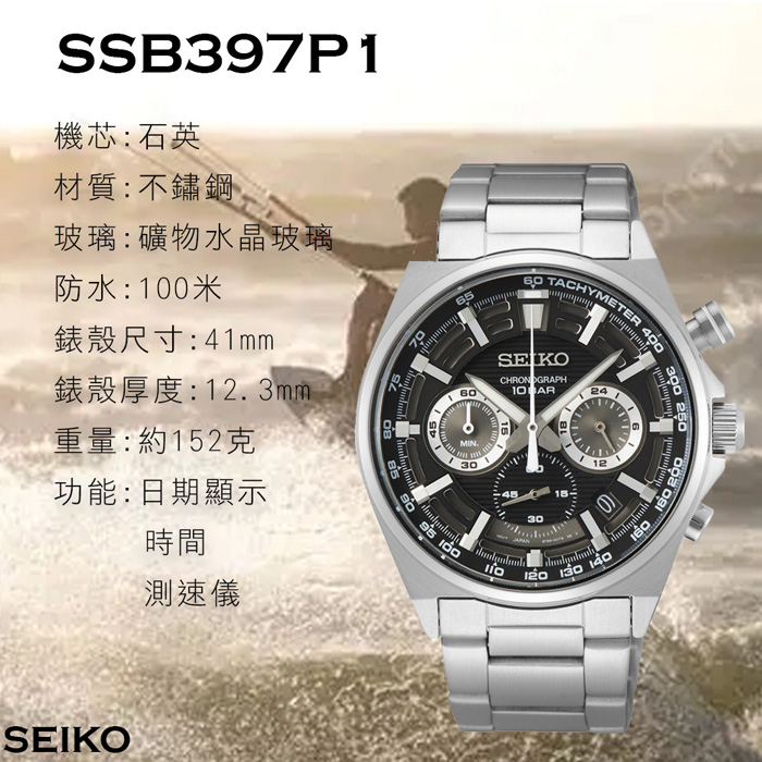 | 【商品名稱】 | 【SEIKO】極速運動三眼計時鋼帶錶SSB397P1 [加贈手環][平輸] |