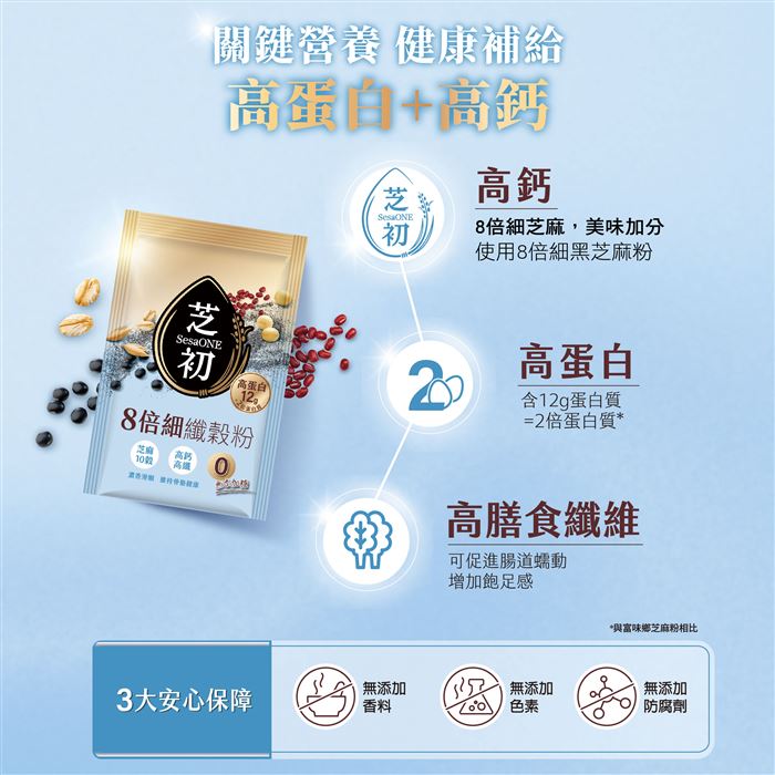 | 商品名稱 | 芝初8倍細高蛋白纖穀粉-無加糖芝麻10穀_富味鄉 |