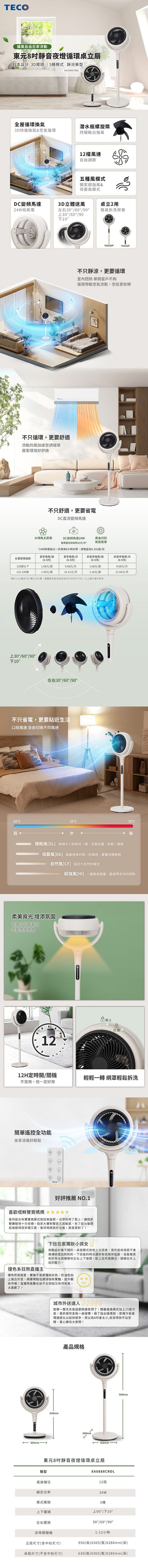 | 商品名稱 | TECO東元 8吋靜音夜燈循環桌立扇 XA0888CRDL |