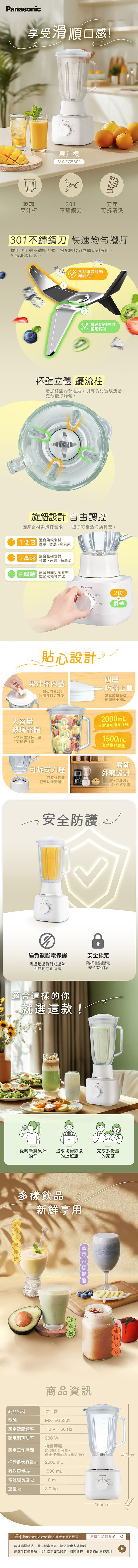 | 商品名稱 | Panasonic 1.5L玻璃果汁機 MX-EG5301 |