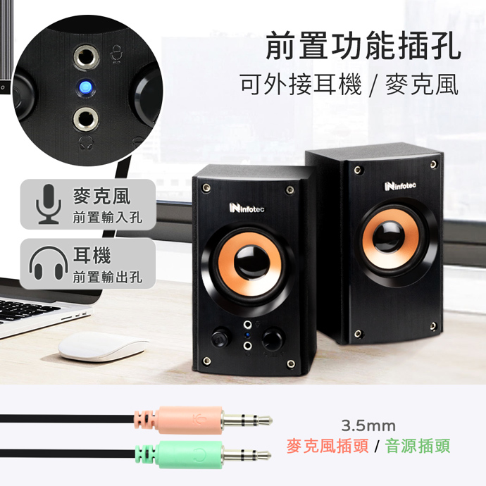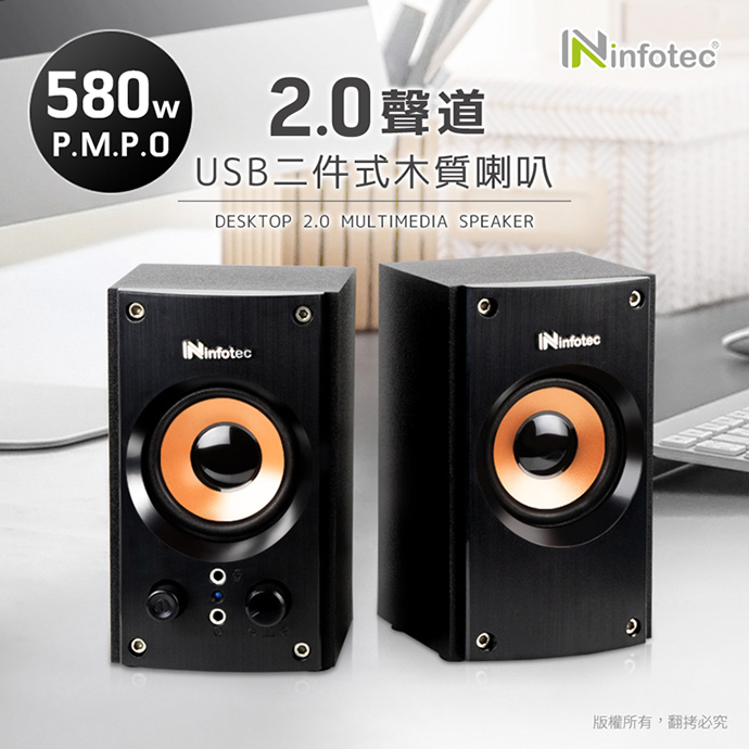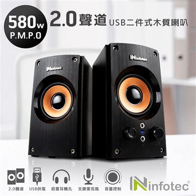 | infotec SP-RX8 580W(P.M.P.O) 2.0聲道 USB二件式木質喇叭 |