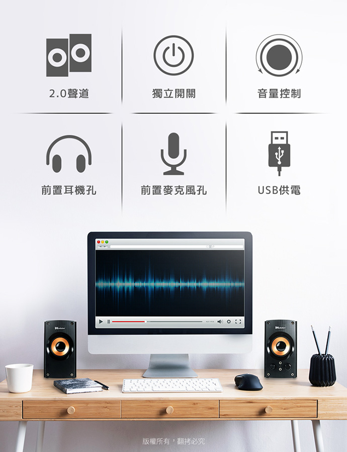 | --2.0聲道音效,細膩清晰;580W(P.M.P.O)高效輸出-- |
