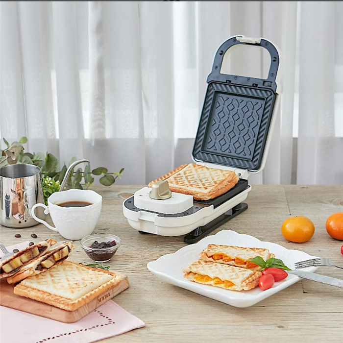 一台熱壓三明治鬆餅機可以製作三明治早餐、蜂蜜鬆餅、巧克力甜甜圈、堅果塔。一機可更換多種烤盤,烤盤表面採2層不沾加工,烘烤食物不易沾附油脂及沾黏,是婆媽們製作早餐、下午茶,廚房必備料理武器。早餐三明治,下午茶甜點,熱壓三分鐘就可以完成,輕鬆上桌是我們推薦給您購買三明治機(鬆餅機)的理由。因為製作輕鬆簡單,您也可以跟孩子一起製作,讓孩子增加成就感,一起參與增加孩子主動參與事情的樂趣。